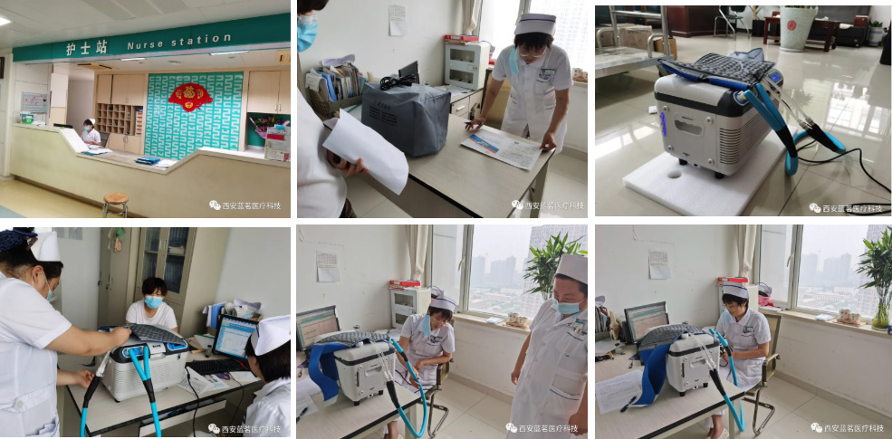 2021年7月12日上午,西安藍(lán)茗醫(yī)療科技有限公司第一營銷中心大區(qū)總監(jiān)郭銘遠(yuǎn)抵達(dá)蓬萊市中醫(yī)院,在醫(yī)院對(duì)醫(yī)護(hù)人員對(duì)我公司生產(chǎn)的加壓冷熱敷機(jī),進(jìn)行了詳細(xì)的裝機(jī)和培訓(xùn),現(xiàn)場(chǎng)醫(yī)護(hù)人員及患者進(jìn)行了體驗(yàn),并得到醫(yī)護(hù)人員的一致好評(píng),此次培訓(xùn)取得圓滿成功。